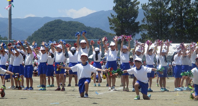 | 平成30年6月2日 児童会スローガン 「仲間との絆を深め協力して楽しい運動会にしよう」 のもと第50回運動会が開催されました。 |