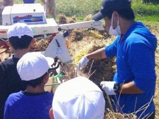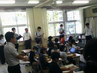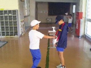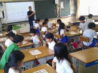 | -HOME <5年生 脱穀>(10月10日) 10月10日(金)、5年生が丹精込めて育ててきた稲の脱穀を行いました。青空の下、天日干しでしっかり と乾燥した稲穂は、脱穀機(ハーベスター)にかけると、心地よい音と共に次々とお米となって分離されていき ました。 子どもたちは協力し合い、順番に稲束を脱穀機まで運び入れる作業に熱心に取り組みました。自分たちで育て た稲が、立派なお米として収穫できた喜びを皆で分かち合いました。 今後は、収穫したお米の販売活動やお世話になった方々への感謝の会を企画する予定です。この貴重な体験を 通して、子どもたちは食の恵みと、協力して何かを成し遂げる大切さを学んでいます。 ![]() ![]() <4年生 体育「あつまりっこベースボール」>(10月9日) 10月9日(木)、5年生が野球型の体育で「あつまりっこベースボール」に取り組みました。このゲームは、 バッターがボールを「投げる」方式で、守備のあいている場所をめがけて投げるのがポイントです。一方、守備 のルールにも工夫があり、ボールを捕ったら、すぐに協力して近くのベースに「集まる」ことで、ランナーの進 塁を止めようとします。ランナーは進んだベースの数だけ得点になるため、攻守ともにスピードと判断力が求め られます。 子どもたちは、バッターの動きに合わせて守備位置を素早く変えたり、「ここに集まろう!」と声をかけ合っ て集合場所を決めたり、瞬時の判断で協力し合って活動していました。一人一人が活躍できる場があり、みんな で協力する重要性を実感しながら、生き生きと学習に取り組んでいました。チームワークと戦略が光る、熱のこ もった体育となりました。 ![]() <5年生 稲刈り>(10月3日) 10月3日(金)に、5年生が心を込めて育ててきた稲の稲刈りを行いました。田植えの日から今日まで、子 どもたちは定期的に稲の生長を観察し、愛情を注いできました。鎌を使って丁寧に刈り取り、その後は、一粒も 無駄にしないようにと、熱心に落穂ひろいも行いました。 今回の稲刈りでは、日頃からご協力いただいている北川様、そして多くの保護者の方々に多大なるご支援をい ただき、無事に作業を終えることができました。心より感謝申し上げます。 刈り取った稲は現在天日干しをしています。1週間後には、いよいよ脱穀の作業を行う予定です。この米作り 体験を通して、子どもたちは命の恵みや、支えてくださる方々への「感謝の心」の大切さを学んでいます。 ![]() <クラブ活動最終日>(10月1日) 10月1日(水)令和7年度のクラブ活動が最終日を迎えました。この一年間、講師の先生方には、深い専門 知識と温かいお心で、子どもたち一人ひとりに優しく丁寧にご指導くださり、本当にありがとうございました。 心より感謝申し上げます。 最終日も、子どもたちは目を輝かせ、一層熱中して活動に取り組みました。活動を終えた子どもたちからは、 「とても楽しかった!」「今までできなかったことができるようになってよかった」といった、充実感と達成感 に満ちた声がたくさん聞かれました。好きなことに没頭できるクラブの時間は、子どもたちにとって何物にも代 えがたい貴重な経験となり、その可能性を大きく広げることができました。この充実した時間は、ひとえに講師 の先生方のご尽力のおかげです。本当にありがとうございました。 ![]() ![]() ![]() ![]() <災害直後の「生きた記事」で学ぶ>(9月29日) 本校では、NIE(教育に新聞を)の研究活動の一環として、4年生が、災害直後の新聞記事を教材として活用 する授業を行いました。 この記事を選んだのは、まさに現場の緊迫感や人々の思いが詰まった「生きた情報」が、子どもたちの学習に 大きな価値をもたらすと確信したからです。記事には、「いつ」「誰が」「何をしたか」という事実だけでなく、 記者の強い思いや被災された方々の切実な声、そして当時の臨場感あふれる情報が凝縮されています。 子どもたちは、これらの記事を読み解く活動を通して、単なる知識としてではなく、「命を守るための公の行 動」を自分事として深く捉えることができました。この貴重な機会は、子どもたちが主体的な学びへとつながる だけでなく、防災意識と社会性を育む上でも大きな一歩になったと感じています。 ![]() <3年生 親子レクでバランスボールに挑戦!>(9月29日) 3年生の親子レクで、バランスボールを使った運動を実施しました。講師の先生にご指導いただき、まずは正 しい姿勢でバランスボールに座ることからスタート。正しい姿勢で座ると、お腹や背中の筋肉が自然と使われ、 その場ですでに体が引き締まる感覚を覚えました。その後、バランスボールを使った様々な運動に親子で挑戦し、 楽しく体を動かして気持ちのいい汗を流しました。笑い声が絶えない賑やかなひとときとなり、親子で健康増進 に努める良い機会となりました。ご指導くださった講師の先生、本当にありがとうございました! ![]() <児童会 ユニセフ募金活動>(9月25日) 児童会が