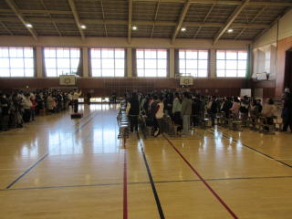 全校が体育館に集まって、今年度もお世話になる青パトのみなさんと顔合わせ。