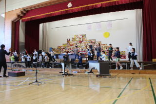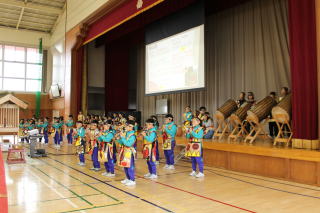 今年の縄文まつりは雨天のため、体育館での「縄文まつり集会」の開催となりました。雨の中、多くの方々にご来校いただき、豊穣儀礼、各学年の発表、縄文の歌のリコーダー奏、縄文太鼓の演奏などを発表。来年は、さらしな縄文の里でお祭りができるといいね!