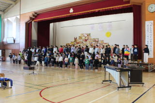 6年生の鼓笛隊の演奏で1年生が入場。全校の友だちからのメッセージ、2年生からの発表、全校の友だちで歌った「ともだちになるために」を歌って、1年生の入学をお祝いしました。1年生のみんなと早く仲良くなりましょう。