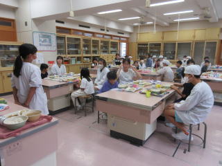 保健給食委員会の主催で「姉妹学級交流給食」が行われました。1年生は6年生と、2年生は5年生と、3年生は4年生と楽しい給食の時間を過ごしました。